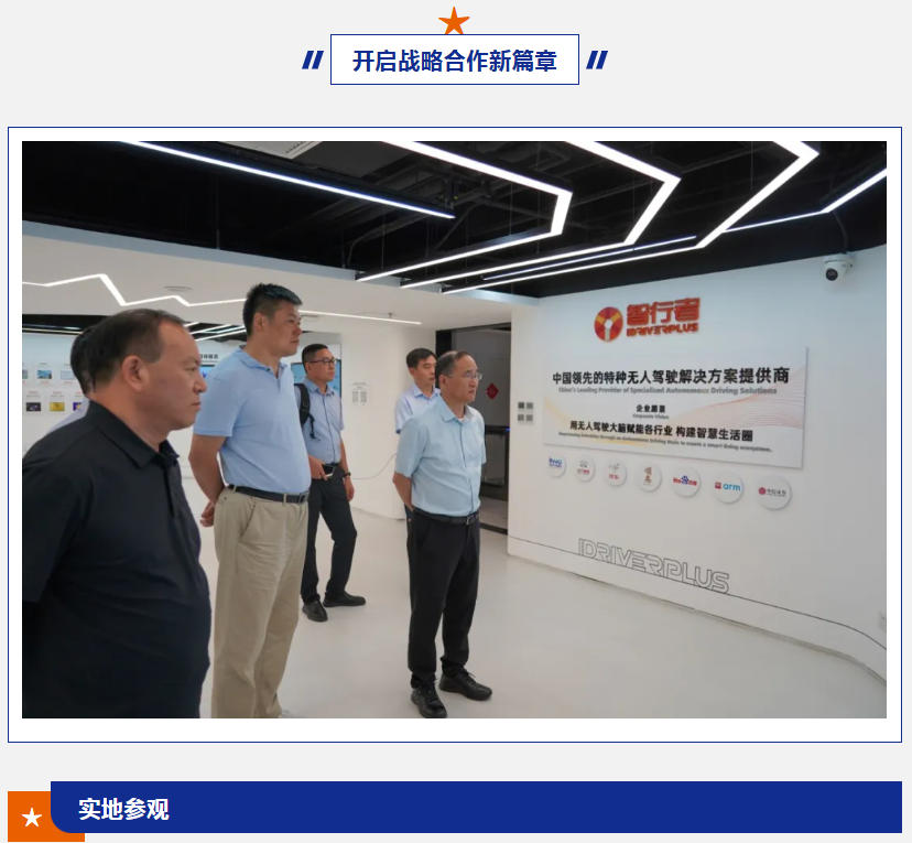 森源集團領導一行實地參觀了北京智行者展廳,全面了解了企業的發展歷程和技術成果,詳細觀看了無人駕駛清潔車的運行演示,并現場體驗無人駕駛觀光車,直觀感受了北京智行者在無人駕駛技術應用方面的領先成果。